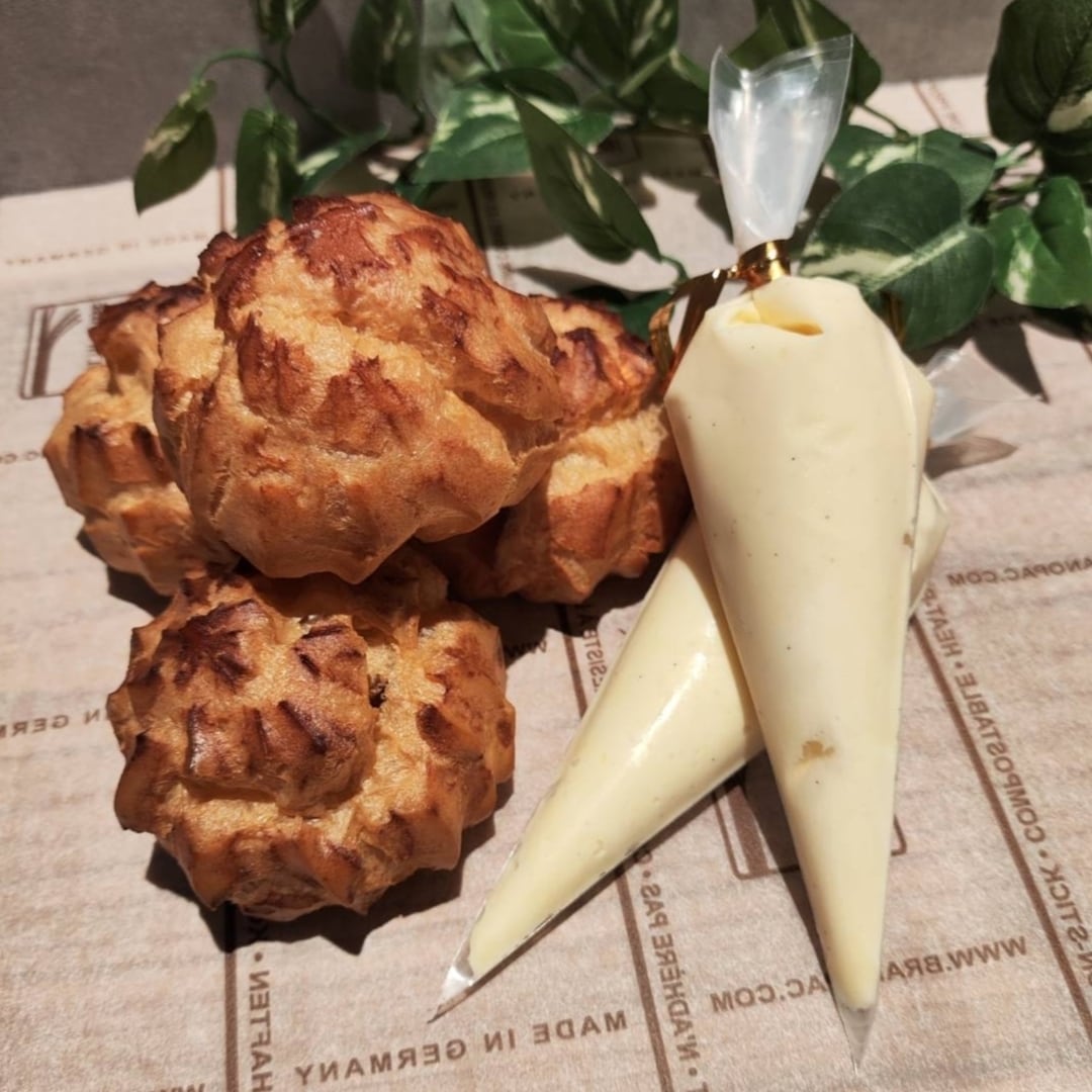 ザクザクしたシュー生地に溢れんばかりの自家製クリーム、香ばしい香りと口に広がる豊かな甘さはどんなシーンでも楽しめるおやつとして人気です。生地は外はザクザク、中はとろりとした食感。新鮮な卵と牛乳をふんだんに使用し、手づくりならではのやさしい味わいに仕上げました。